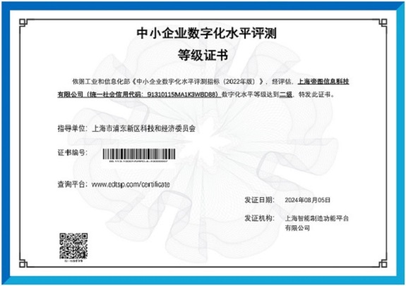 數(shù)字化征程新突破:帝圖科技榮獲二級證書